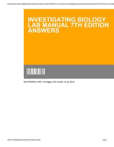 Reading Online INVESTIGATING BIOLOGY LAB MANUAL 7TH EDITION PDF DOWNLOAD Reader Gutenberg